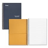 Personal-size note books with durable poly covers Rule / Bound Type: College / Wirebound. No. of Subjects / Cover Color: 1 Subject / Assorted Colors. Size / Sheet Count: 7" x 4 3/8" / 100 Sheets. College-ruled, white paper with perforated edge. Full-size pocket dividers for paper storage. Spiral Lock wires to prevent coil snags. Assorted colors include navy, red, black pink, teal and trend blue